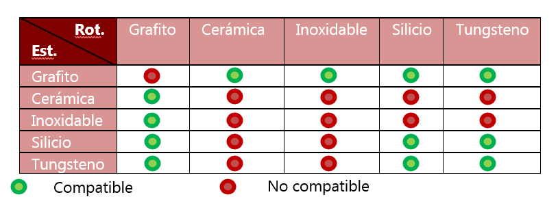 > Pista de roce rotativa: teflón, carburo de silicio.