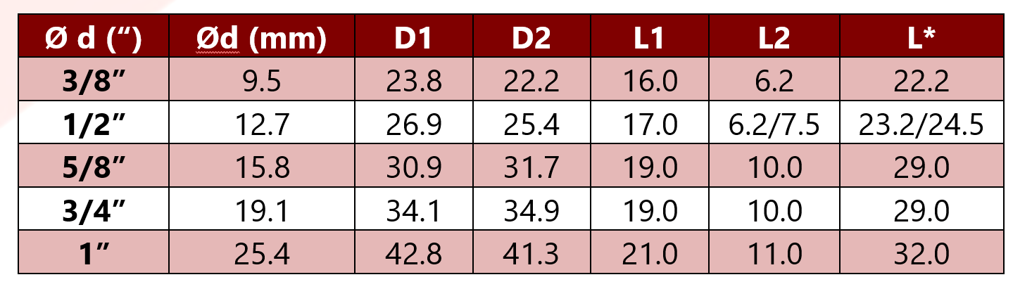 *Valores variables dependiendo de: Ø eje, presión, velocidad, temperatura y producto.