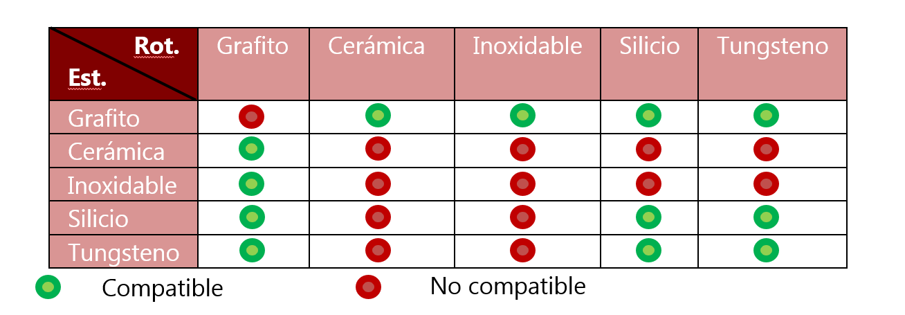> Pista de roce rotativa: grafito, carburo de silicio.