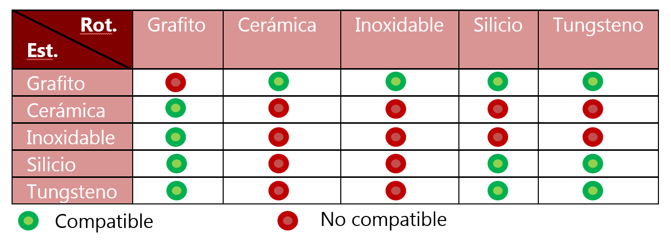 > Pista de roce rotativa: grafito, carburo de silicio, carburo de tungsteno.