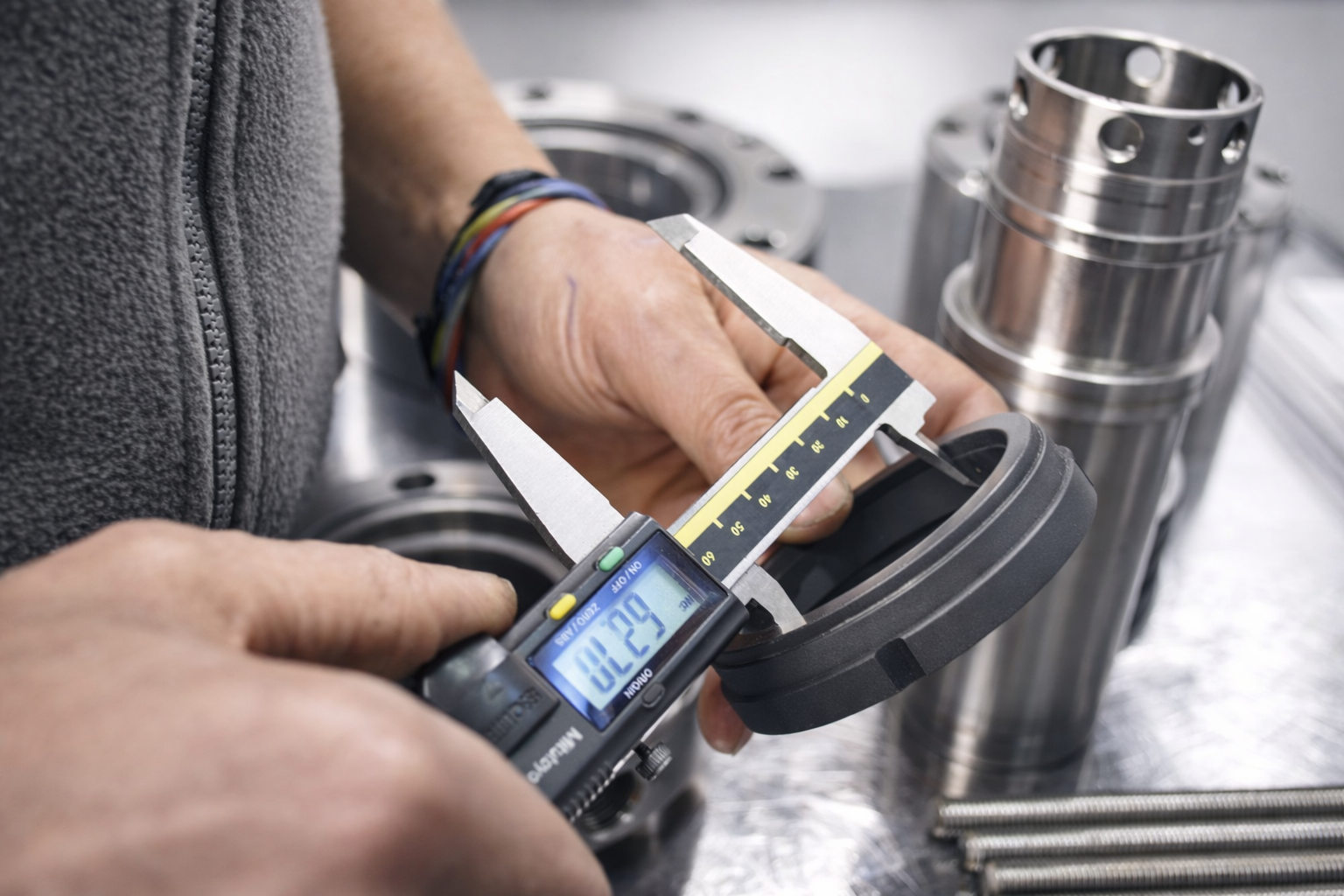 • Control dimensional y paralelismo de desgaste en caras de roce y otros elementos del sello mecánico.